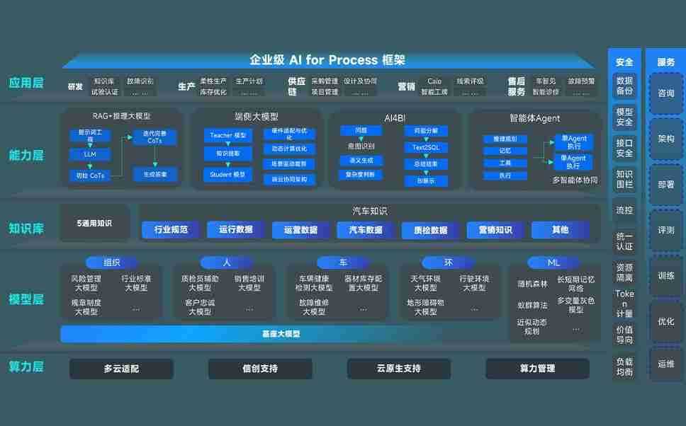 奇亿娱乐问学智车解决方案是一套基于AI技术的汽车行业智能化系统,,,,覆盖从底层算力到顶层AI应用的全栈方案。。。。方案由算力层、、、、模型层和应用层组成:算力层,,方案支持多种一体机配置,,,,具备云端灵活部署、、、多云适配以及动态优化计算资源的能力;模型层,,,奇亿娱乐问学平台版提供了企业级AI应用一站式构建与管理平台,,支持基于后训练强化技术的汽车企业专属模型的训练、、、评测和运营;应用层,,奇亿娱乐问学DeepSeek版提供包括超级员工、、、、智能招采、、、、智能营销、、智能客服、、AI for BI等一系列解决方案,,,可助力汽车行业实现数字化转型,,,让管理更智能、、响应更敏捷。。。