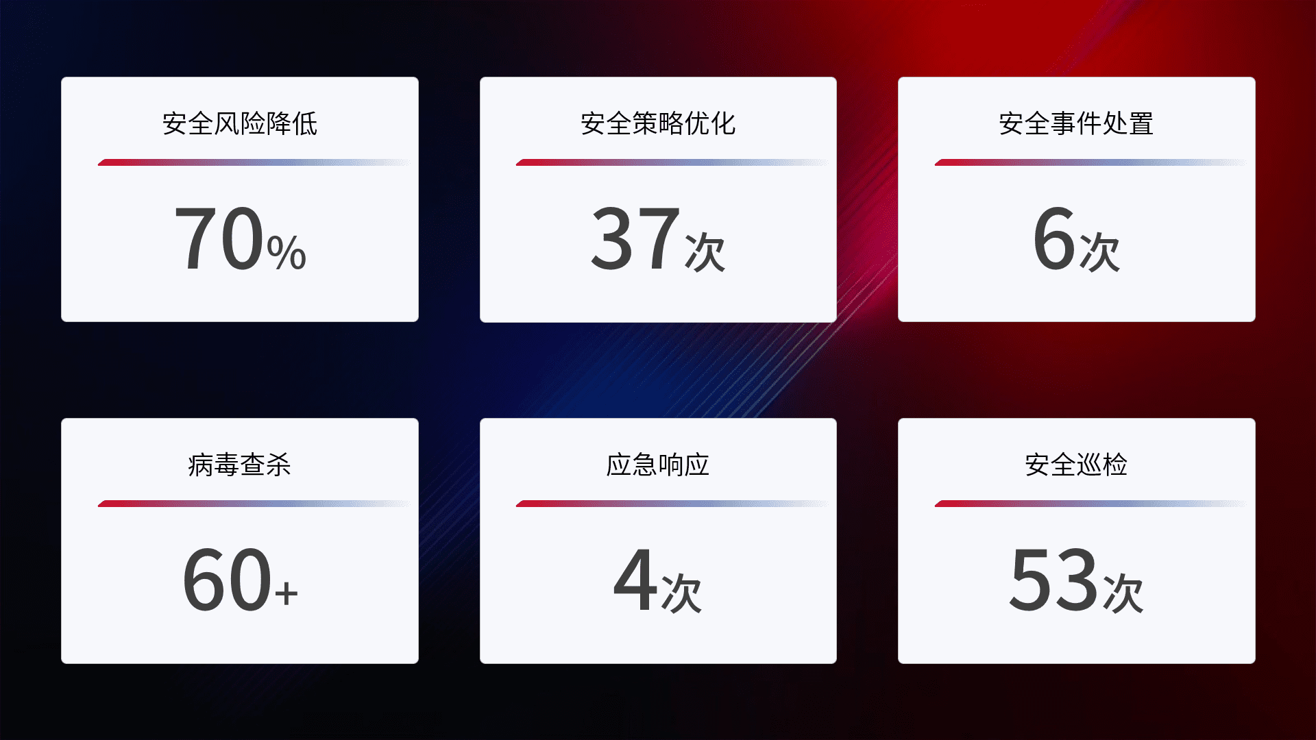 提供全面的安全事件报告体系,,包括处置报告、、、、周报、、季度和年度总结,,结合持续监控,,,,帮助客户深入了解网络安全状况。。。