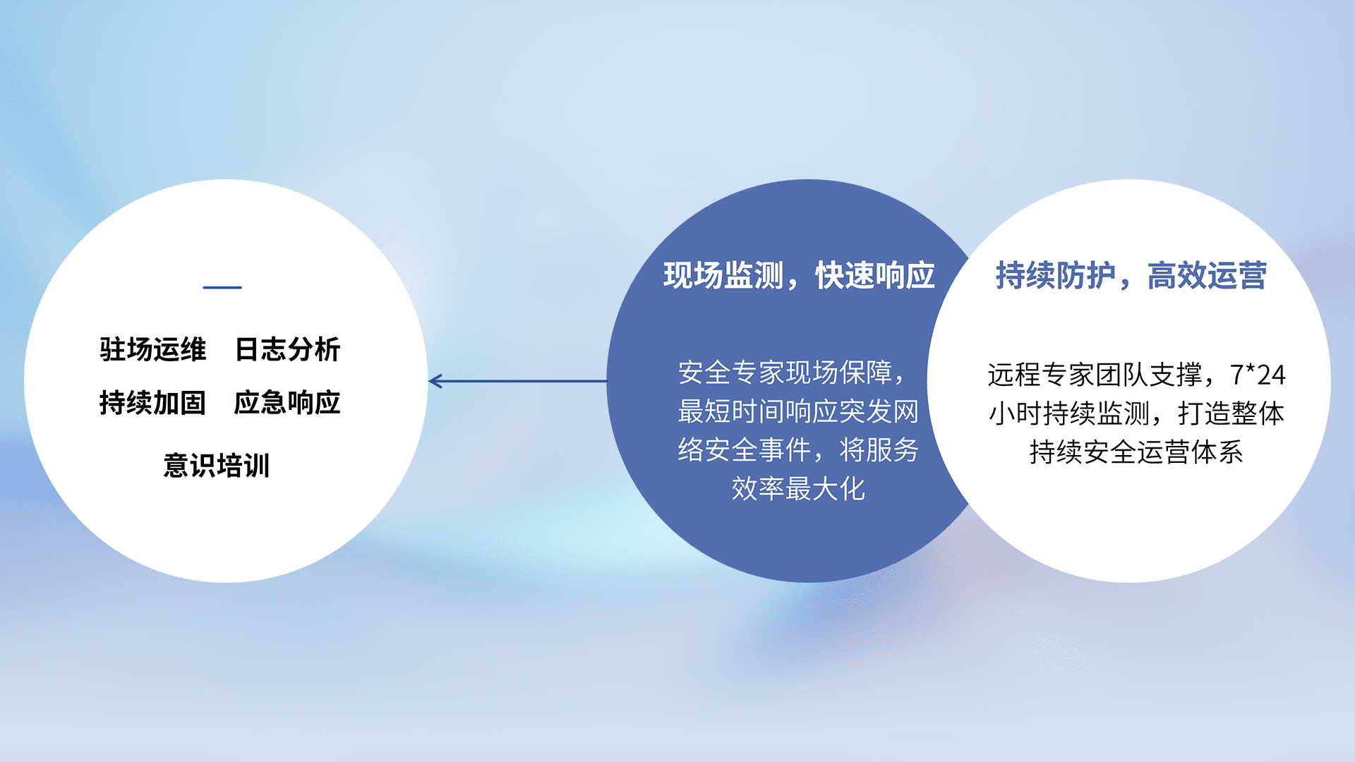 针对客户行业特性,,提供专属的一站式安全管理服务,,帮助客户全面感知网络空间威胁,,,通过安全专家的线上、、、、线下防护支持,,实现风险闭环,,,,将安全保障常态化,,,为客户打造常态化安全运维运营服务。。