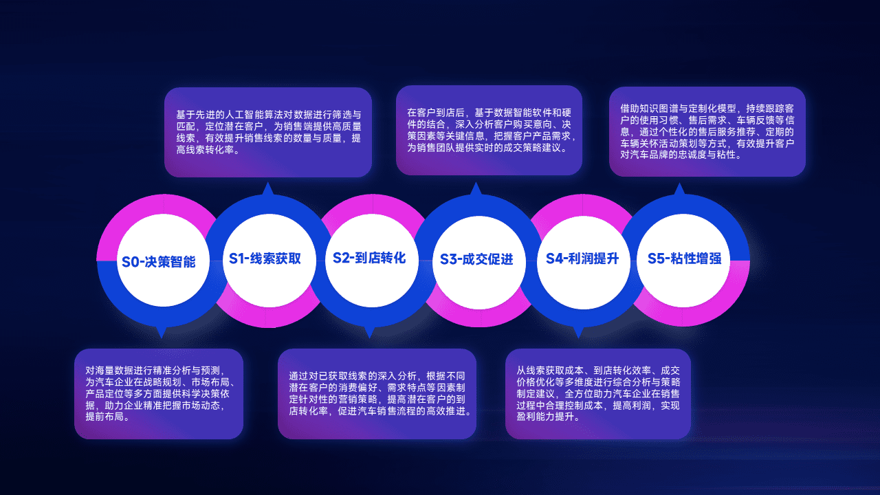 通过拓宽潜在客户来源、、优化线索分配并提高到店转化率,,,,以增强销售效率。。。。同时,,,,利用线索数据不断优化分析模型,,,有效提升转化率,,,扩大营销影响力。。